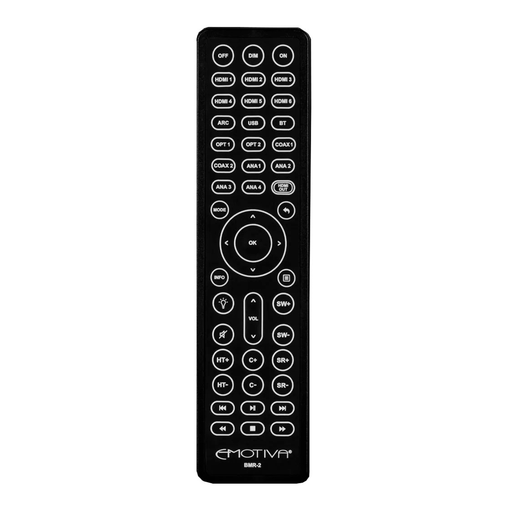 Интуитивно понятное меню упрощает настройку и управление Emotiva BasX MC1 с помощью прилагаемого инфракрасного пульта дистанционного управления с подсветкой и четкого и лаконичного экранного дисплея. MC1 также может управляться большинством программируемых универсальных пультов дистанционного управления и целыми системами домашней автоматизации с помощью инфракрасных команд или проводных команд, полученных через его интерфейс RS-232.