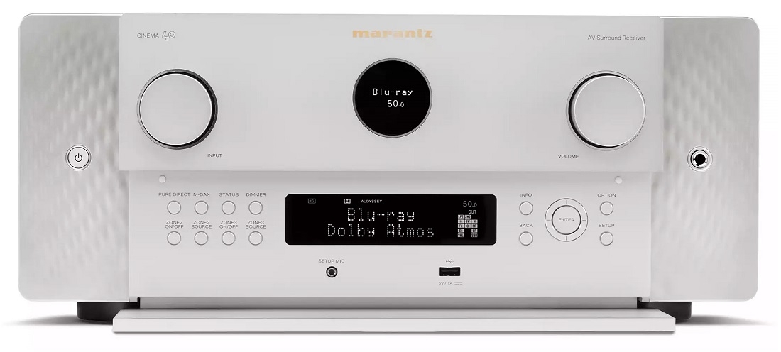 Marantz CINEMA 40 – премиальный 9.4- канальный AV-усилитель с усилением 125 Вт на канал, Dolby Atmos, DTS:X и Auro-3D, 8K Ultra HD и встроенным стримингом HEOS. CINEMA 40 — это впечатляющий AV-усилитель эталонного уровня. Захватывающая объёмность, теплое и богатое звучание и реалистичная динамика — легендарные отличительные черты звука Marantz. CINEMA 40 насыщен современными технологиями, новейшими иммерсивными аудиоформатами, видео 8K, оптимизацией помещения, потоковой передачей и другими технологиями, которые упрощают и улучшают качество вашей жизни. Современное выражение принципов дизайна, не подвластных времени, CINEMA 40 имеет культовый "иллюминатор" Marantz, премиальные материалы и элегантную боковую подсветку на передней панели.
