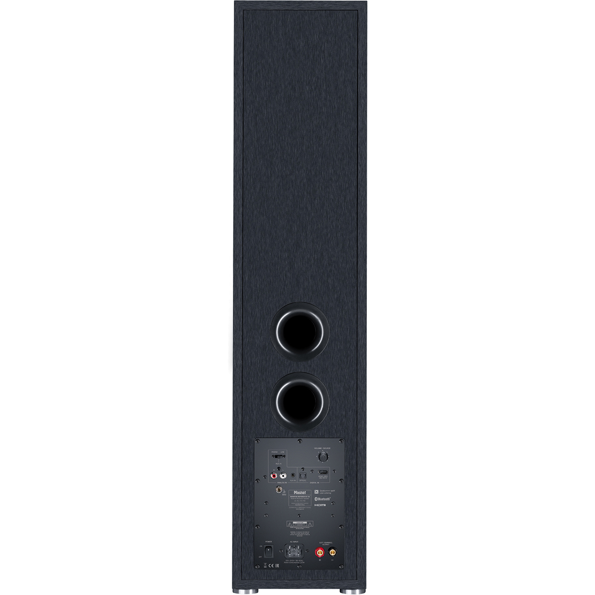 Акустика оснащена встроенными усилителями мощностью до 120 Вт пиковой мощности на канал. Magnat Monitor Reference 5A построена по принципу стереопары «ведущий – ведомый». Усилители, входные разъемы и схема управления сосредоточены в одной колонке пары, а вторая подключается к ней простым акустическим кабелем. Это обеспечивает значительное удобство в размещении системы. Magnat Monitor Reference 5A оснащены аналоговым RCA (Phono/линейный), аналоговым mini-jack 3,5 мм, оптическим входами, а также входом HDMI. Этот вход можно использовать для подключения колонок к ТВ. Благодаря поддержке возвратного аудиоканала ARC это делает акустику Magnat Monitor Reference 5A удобной для прослушивания звукового сопровождения телепрограмм и кинофильмов. Для цифровых сигналов поддерживаются параметры 24 бит / 192 кГц.