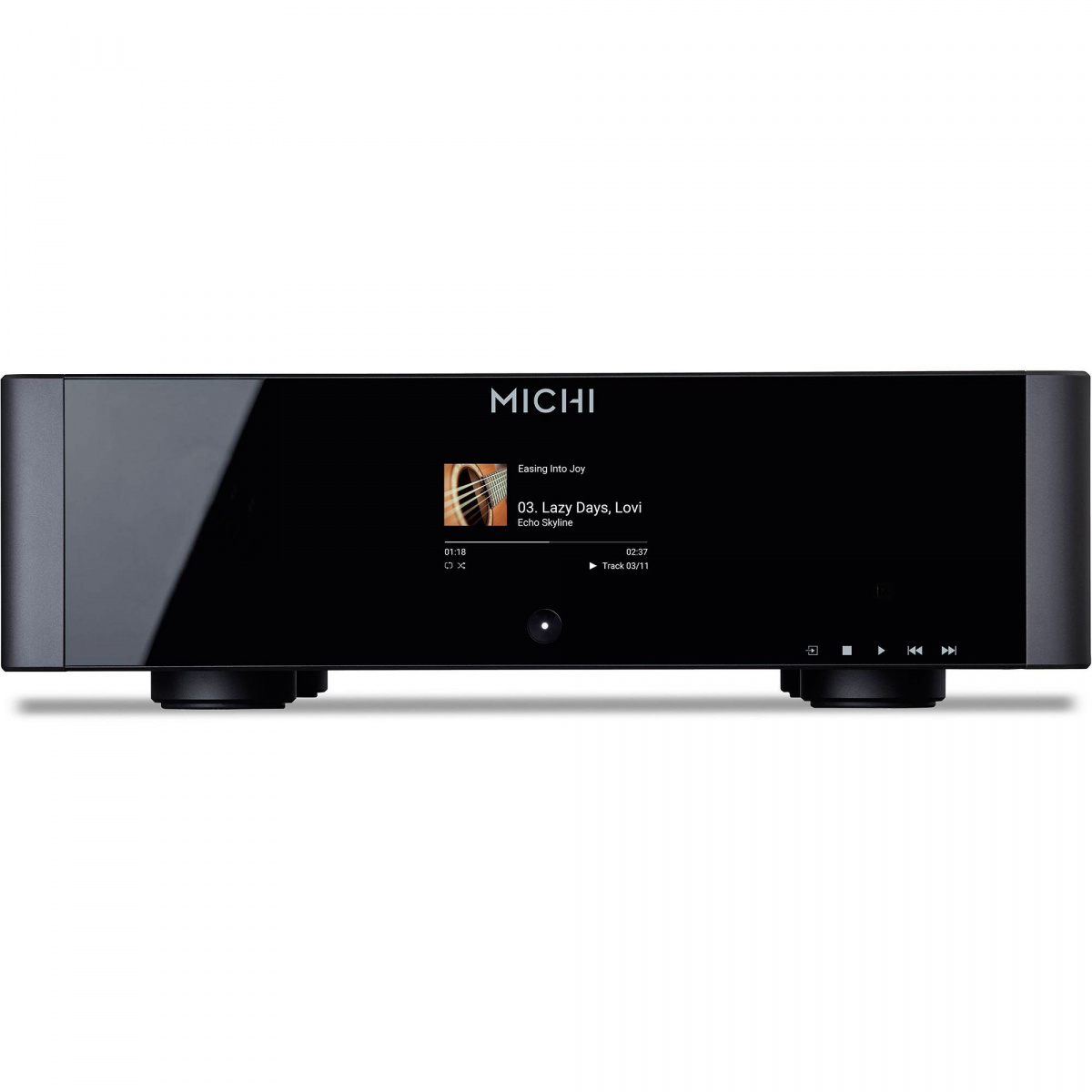Элегантная передняя панель Michi Q5 выполнена в минималистичном стиле и оснащена цветным TFT-дисплеем, который отображает обложки альбомов во время воспроизведения. В комплекте идет пульт дистанционного управления, а RS232 и Ethernet порты позволяют интегрировать устройство с системами автоматизации, что упрощает управление аудиосистемой.