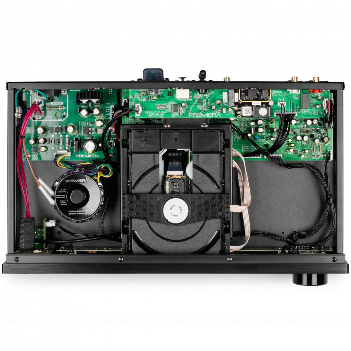 Однако на этом возможности Premiera C1S Pro не заканчиваются. Модель оснащена стриминговой платформой с подсоединением к сети по Ethernet или Wi-Fi. Предусмотрены доступ к локальным устройствам по технологии DLNA, сервисам TIDAL, Qobuz, Deezer и другим, прослушивание интернет-радио, подключение по AirPlay2. Для управления есть приложение Audio System. В проигрывателе имеется гнездо USB для внешних накопителей с аудиофайлами. Прослушивание композиций с мобильных устройств доступно и через Bluetooth с поддержкой улучшенных аудиокодеков aptX HD и AAC.