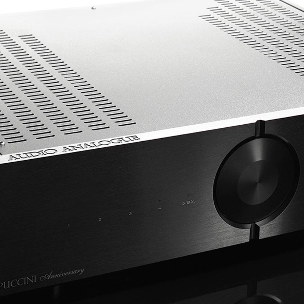 Audio Analogue Puccini Anniversary – первый аналоговый аудиоусилитель и абсолютная веха в области высококачественного звука. Мечтой было создать лучшего Пуччини на свете. Продукт, который также стал поворотным моментом в истории Audio Analogue и проследил путь к тому, какими будут продукты будущего, созданный с намерением дать максимум с точки зрения качества звука, но и технически очень продвинутый. Это, безусловно, трудная задача, и чтобы сделать её возможной, нужно было что-то уникальное и здесь была закреплена идея, рожденная в лабораториях Airtech: создать интегральный усилитель без глобальной обратной связи, чтобы он был менее чувствителен к типу нагрузки, у него не должно быть склонности к колебаниям, нет высоких пиков частотного резонанса, также отсутствует насыщение во входных каскадах и с полностью балансной схемотехникой.