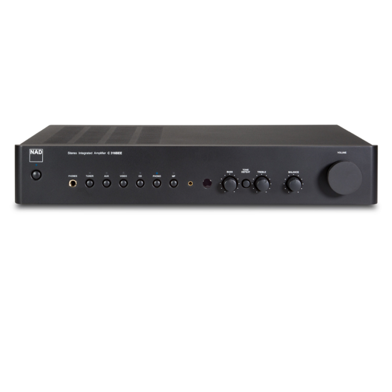 Усилитель оснащен четырьмя линейными входами, а также входом для подключения MM-звукоснимателя проигрывателя виниловых дисков. На передней панели NAD C316BEE V2 имеется полный набор органов управления, включающий удобные кнопки прямого выбора входов, отключаемые регуляторы тембра по низким и высоким частотам, рукоятки стереобаланса и громкости. Также здесь предусмотрено гнездо для подключения наушников.