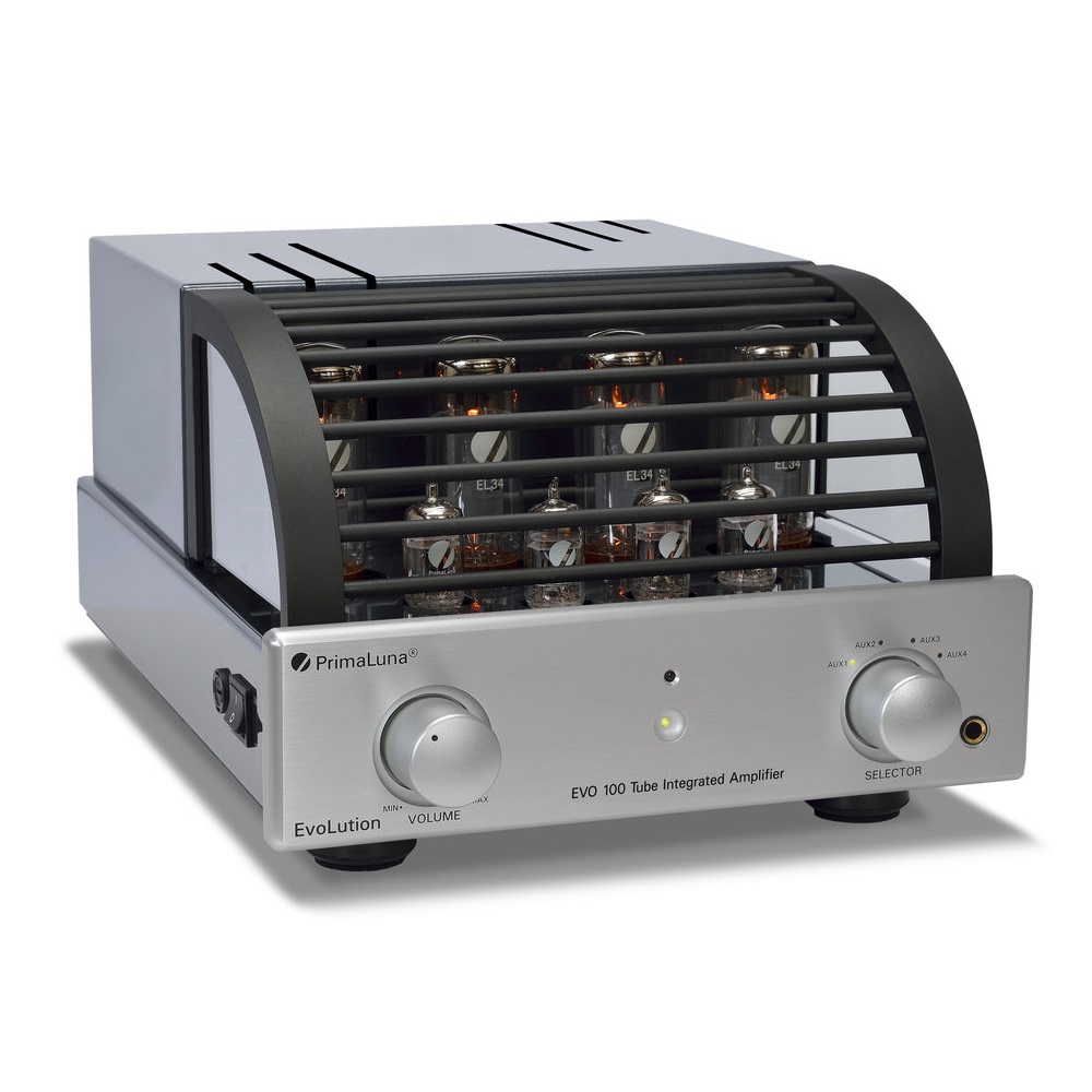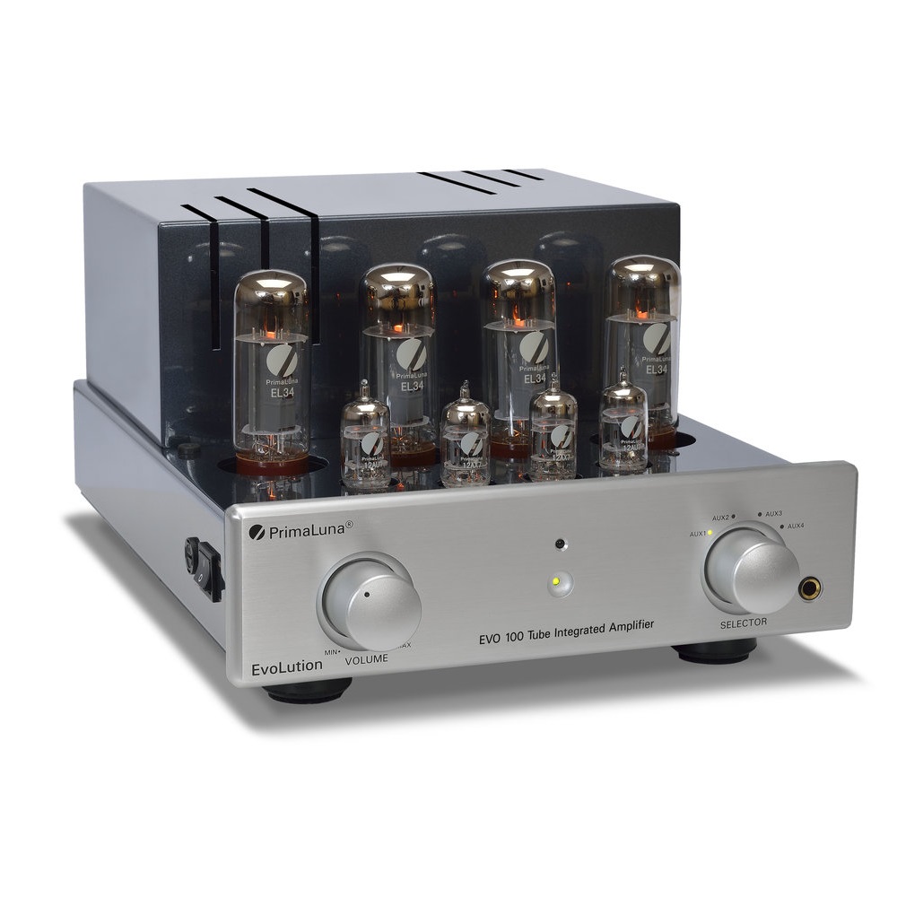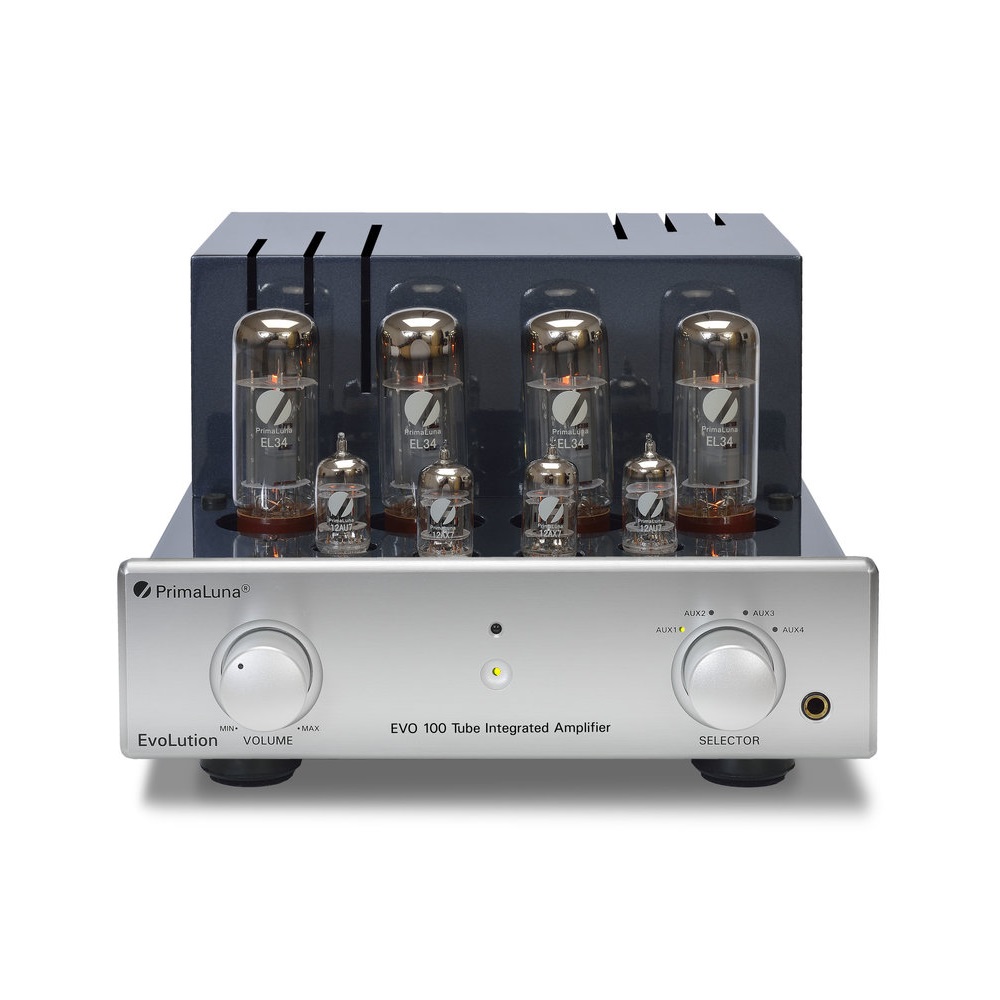 PrimaLuna Evolution 100 Int Silver - высококачественный ламповый усилитель премиального класса. Его по достоинству оценят настоящие аудиофилы, для которых важно достичь максимально возможного качества звучания. Усилитель двухканальный, мощность усиления каждого из каналов составляет 40 Вт. При этом он может похвастаться высокой линейностью амплитудно-частотной характеристики: в частотном диапазоне от 10 до 32000 Гц неравномерность составят менее 1 дБ. Соотношение сигнал/шум данной модели равен 90 дБ. Потребляемая мощность устройства составляет 270 Вт. Источник входного аудиосигнала к EVO 100 подключается с помощью четырех стандартных RCA коннекторов. Усиленный звук выводится на 4 RCA коннектора и дублируется на разъем для наушников стандарта Jack 6.3 мм. Дизайн усилителя предусматривает легкую замену вышедших из строя электронных ламп. В случае неполадок возле отказавшей лампы загорится красный индикатор. Электронная начинка усилителя спроектирована таким образом, что поломка лампы не сможет навредить прочим компонентам устройства. Стильный корпус представлен в серебристом цвете.