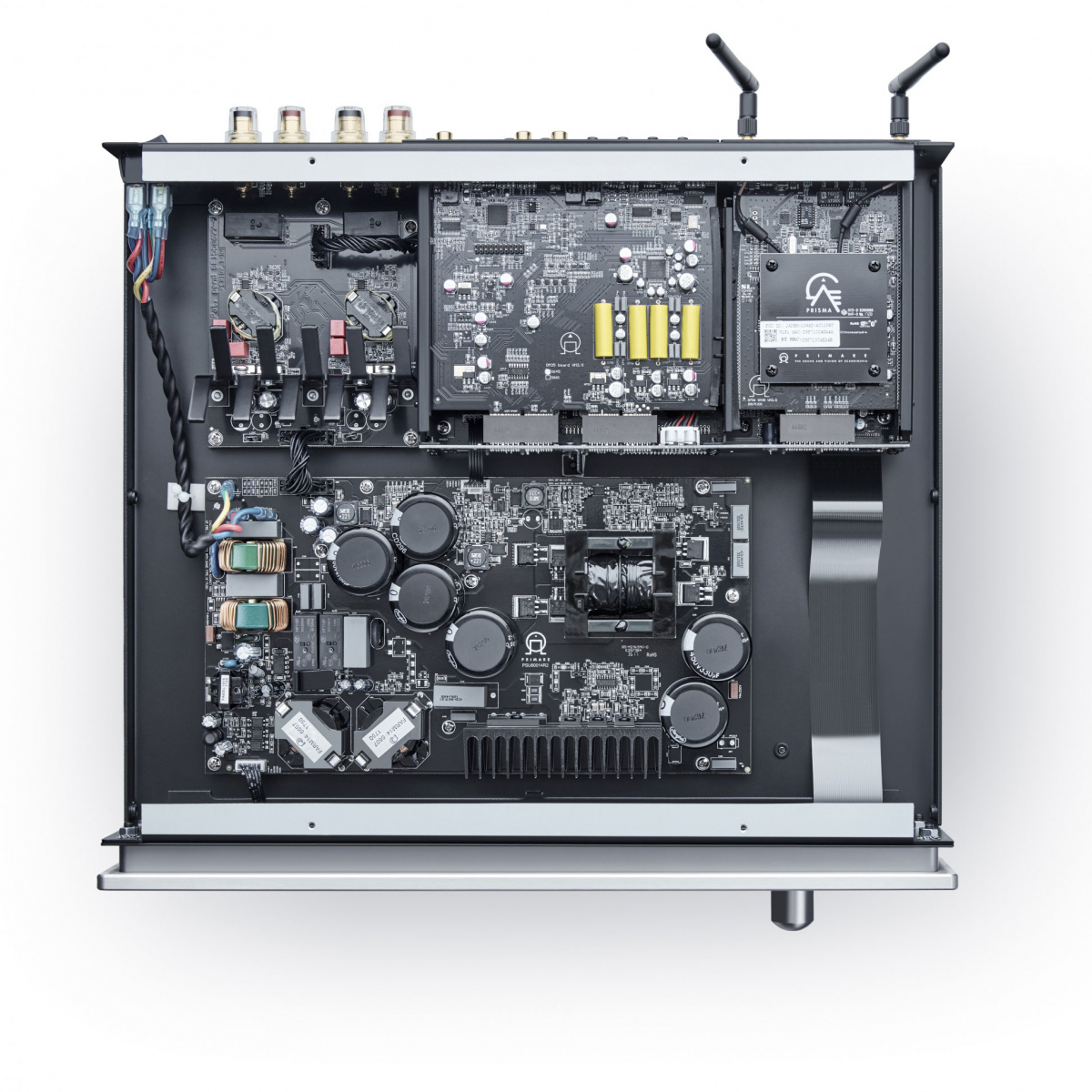 Интегральный усилитель, сетевой проигрыватель, ЦАП, ЦАП: 32-бит/768 кГц; DSD256 (11.2 мГц), выходная мощность: 2 х 100 Вт (8 Ом); 2 х 200 Вт (4 Ом), диапазон частот: 20 Гц - 20 кГц (-0,2 дБ), гармоники: 0.05%, соотношение сигнал/шум: 100 дБ, коэффициент усиления: 16,5 дБ, потоковые сервисы: DLNA/UPnP, Airplay, Bluetooth, Chromecast, Spotify, воспроизводимые форматы: WAV, LPCM, AIFF, FLAC, ALAC, WMA, OGG:, DSD, MP3, MP4, аудио входы: 5 х RCA, 2 х S/PDIF (RCA), 4 x Toslink, 1 x USB-B, 1 x USB-A, 1 x Ethernet (RJ45), WiFi (2.4/5 гГц), аудио выходы: 2 х RCA, 1 х S/PDIF (RCA), габариты: 430 x 420 x 106 мм, вес: 11 кг, цвет: черный.