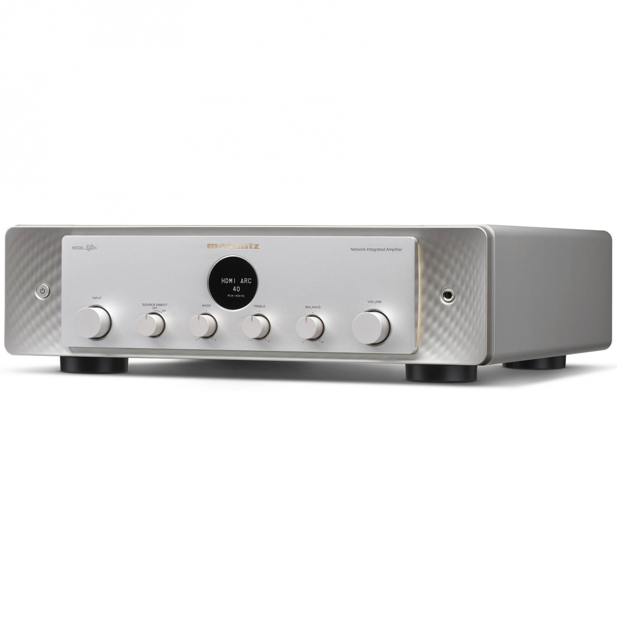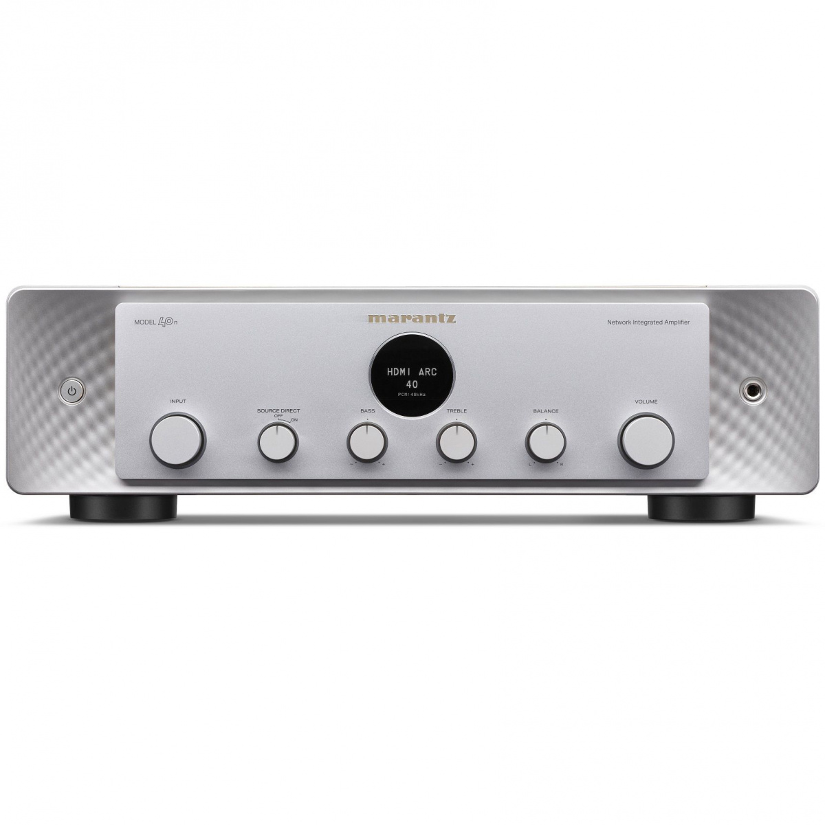 Marantz Model 40n – интегральный стереоусилитель со встроенной функцией потоковой передачи. Полный набор аналоговых и цифровых входов, а также встроенная потоковая передача и HDMI делают прослушивание приятным и легким независимо от источника. Потоковая передача из Spotify, Pandora, Tidal и других источников или использование собственных библиотек музыкальных файлов. Работает с Alexa, Google и Siri. Создайте мультирумный музыкальный опыт с MODEL 40n в качестве домашнего музыкального центра. HDMI ARC (Audio Return Channel) добавляет необыкновенную гибкость этому стереоусилителю, позволяя воспроизводить звук телевизора через стереосистему. Легко подключайтесь через Bluetooth, Apple AirPlay 2 или напрямую из приложения HEOS, чтобы воспроизводить любимые композиции из сотен потоковых сервисов. Номинальная выходная мощность - 70 Вт + 70 Вт (8 Ом) и 100 Вт + 100 Вт (4 Ом).