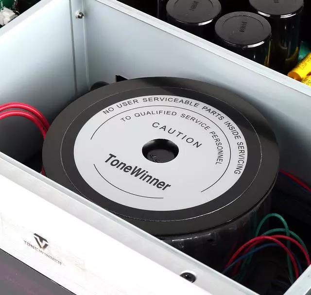 Цифровое ядро этой микросхемы ЦАП в ToneWinner AD-86D выполняет фильтрацию, регулировку громкости и контроль уровня входного сигнала. Большой объем в блоке питания усилителя мощности занимают 4 конденсатора емкостью 12000 мкФ, сделанные на заказ, (Barkam) и 3 конденсатора фильтра (CBB); 2 конденсатора высокого качества емкостью 4700 мкФ предназначены для входного фильтра усилителя; также используются электронные схемы фильтра, которые в первую очередь предназначены для подавления помех в цепях питания (PSRR). Аналоговый источник питания использует конденсаторы фильтра питания серии RE3 компании ELNA (Япония), а выходной каскад оснащен высокоскоростными транзисторами Toshiba (150 Вт). Конденсаторы фильтра и входные блокировочные конденсаторы в основном используют продукцию CBB и других известных брендов, а выходные реле Panasonic JTN 1 выбраны за способность обрабатывать огромные потоки тока (30 A).