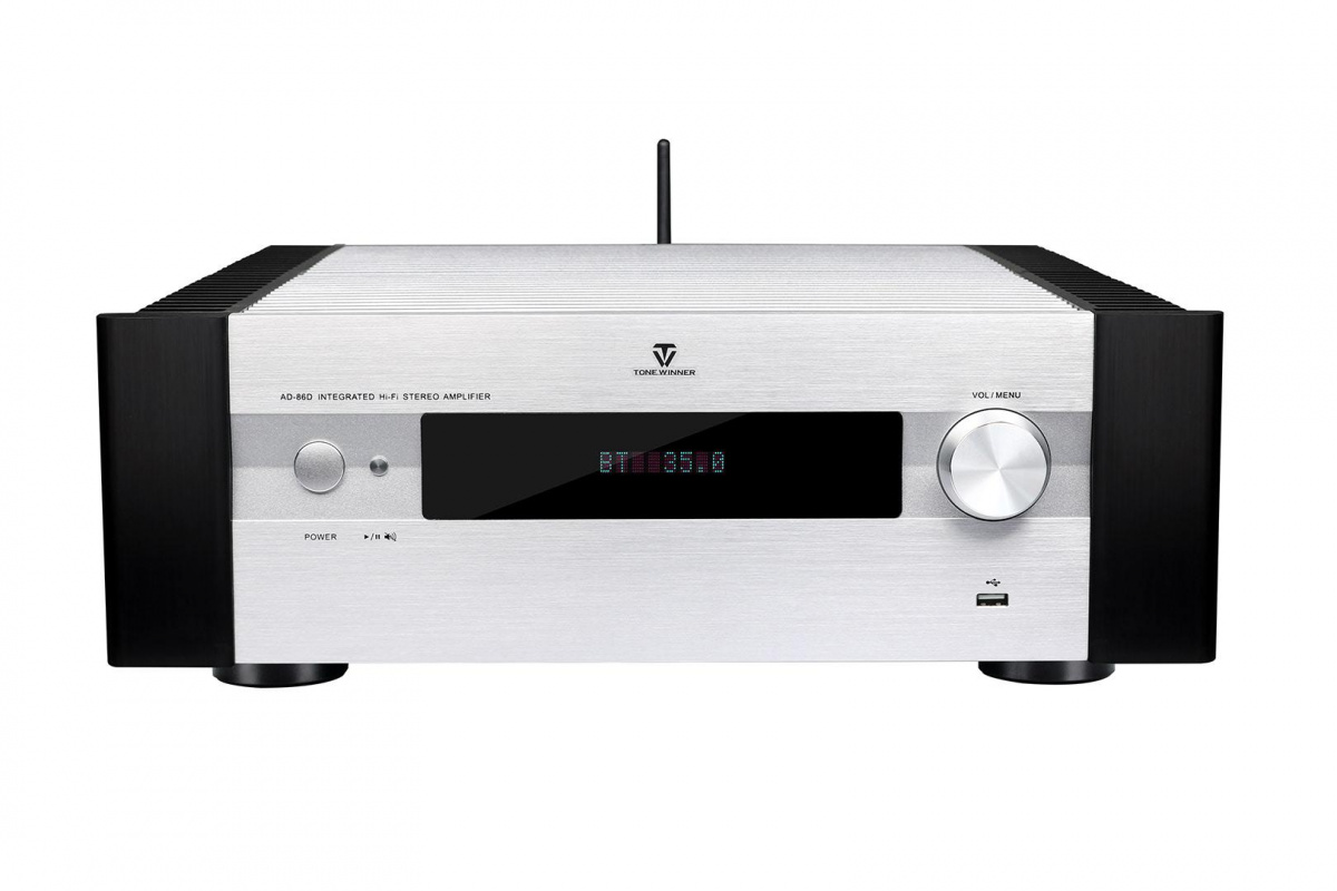 Усилитель ToneWinner AD-86D сделан на базе профессиональной версии AD-86PRO с добавлением высококачественного аудиодекодера и аудиомодуля Bluetooth. В качестве ЦАП используется аудиофильский топовый чип американской компании Analog Devices AD-1955 с частотой дискретизации 192 кГц при разрядности в 24 бит. ЦАП оснащен отдельной цифровой фильтрацией и цифро-аналоговой коммутацией входных и выходных сигналов, а его динамический диапазон и соотношение сигнал/шум может достигать 126 дБ, что позволяет максимально снизить степень ошибки цифрового потока данных при синхронизации. Даже обычный сигнал с CD, декодированный с помощью этого ЦАП, преобразуется в отличное звучание. Обладая высокими характеристиками, низким уровнем искажений и шума, высоким разрешением, он имеет регулировку тембра, а его дифференциальный выход подключается к регулятору громкости с шагом 0,5 дБ с применением микросхемы Japan Radio Company NJW1194 для управления входом источника звука.