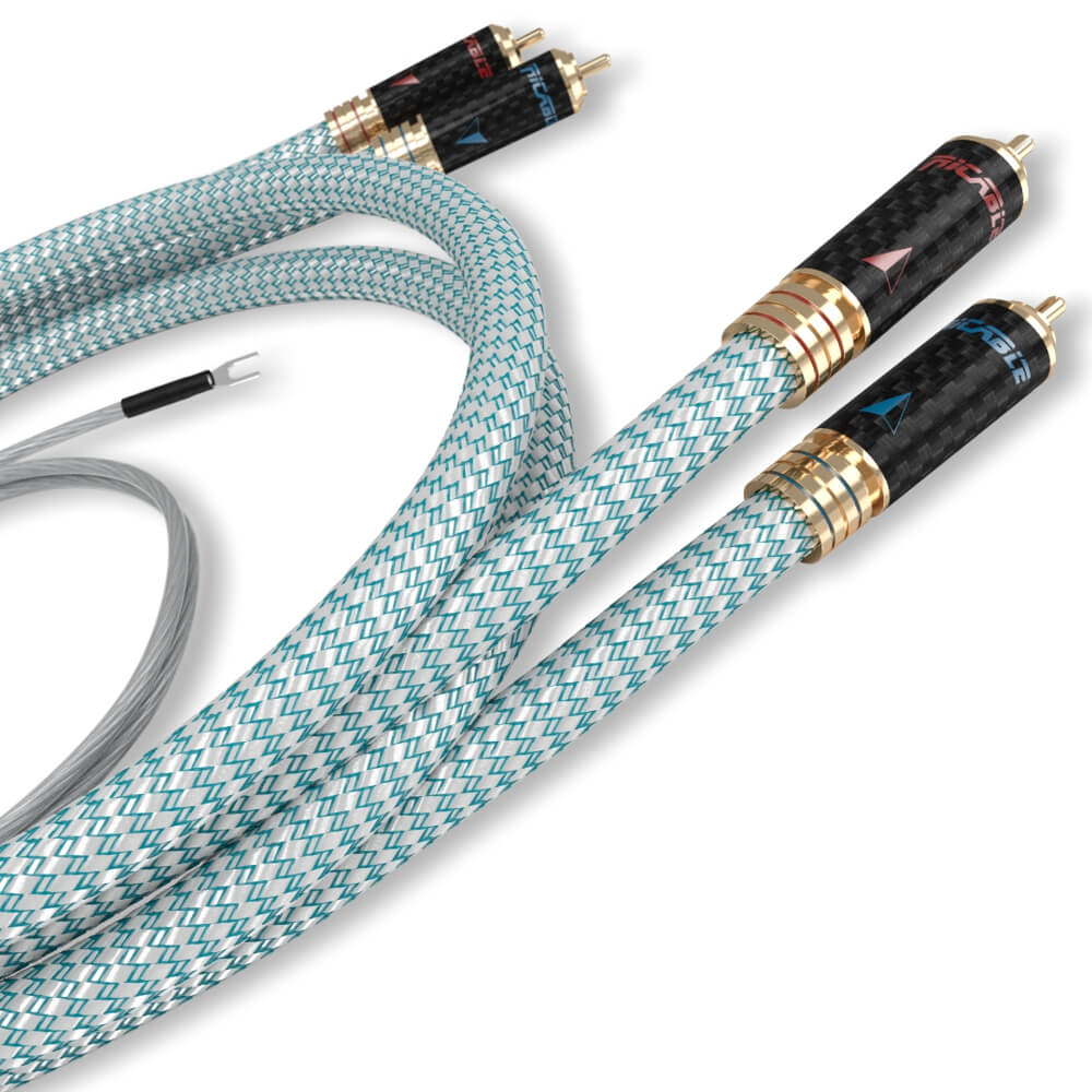 Фонокабель референсного уровня с разъемами RCA с проводниками из чистой меди MARC 7N 99,99999% и технологией подавления шума. Разъемы из чистой меди OFC с 24-каратным золотым покрытием