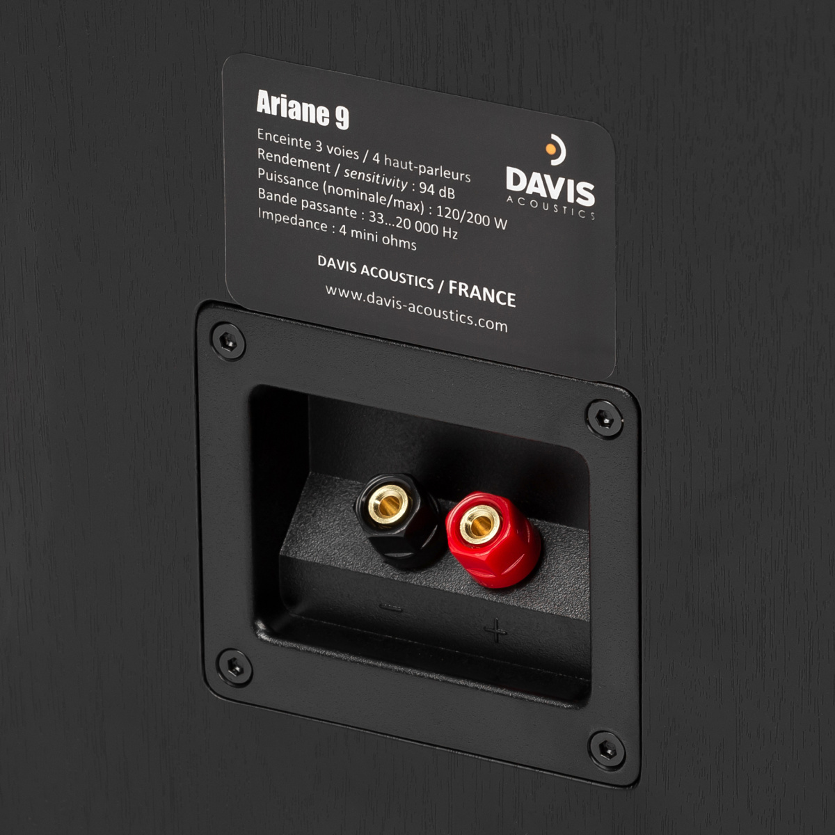 Davis Acoustics Ariane 9 - это самая крупная напольная модель в линейке Ariane от DAVIS Acoustics. Создана для комнат прослушивания площадью 40 м2 и более. Эта последняя версия обладает теми же техническими характеристиками, что и ARIANE 5 и 7, но при этом значительно увеличена глубина басов. Звуковая сцена становится еще шире и реалистичнее. Импеданс акустической системы никогда не опускается ниже 4 Ом, чтобы избежать перегрева усилителя. Высокие частоты воспроизводятся невероятно чисто благодаря новому, тонкому и особенно детализированному твитеру. С эстетической точки зрения модель доступна в двух различных версиях: светлый дуб (черная передняя панель и дубовые боковины) и более сдержанная черная отделка (все 6 сторон черные). Защитные грили имеют закругленную форму для создания современного эстетического финиша.