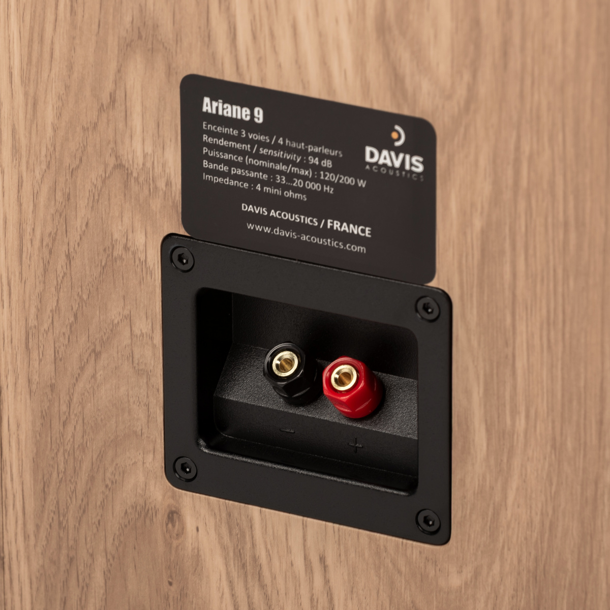 Davis Acoustics Ariane 9 - это самая крупная напольная модель в линейке Ariane от DAVIS Acoustics. Создана для комнат прослушивания площадью 40 м2 и более. Эта последняя версия обладает теми же техническими характеристиками, что и ARIANE 5 и 7, но при этом значительно увеличена глубина басов. Звуковая сцена становится еще шире и реалистичнее. Импеданс акустической системы никогда не опускается ниже 4 Ом, чтобы избежать перегрева усилителя. Высокие частоты воспроизводятся невероятно чисто благодаря новому, тонкому и особенно детализированному твитеру. С эстетической точки зрения модель доступна в двух различных версиях: светлый дуб (черная передняя панель и дубовые боковины) и более сдержанная черная отделка (все 6 сторон черные). Защитные грили имеют закругленную форму для создания современного эстетического финиша.