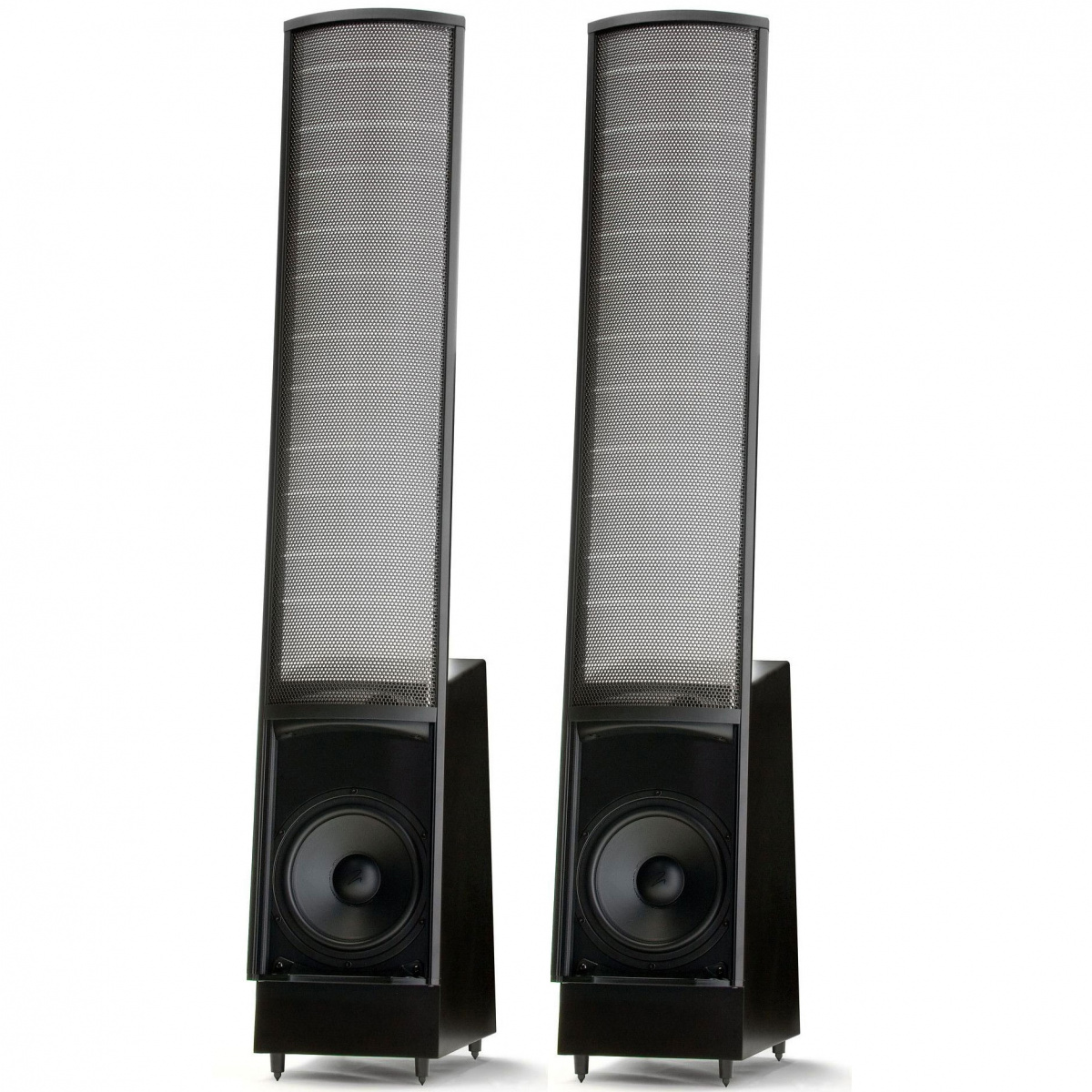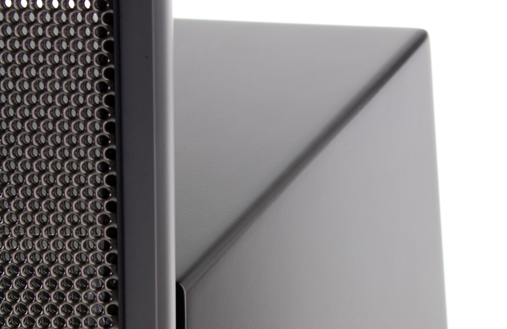 Электростатическая панель XStat громкоговорителя ElectroMotion ESL выполнена по технологии MicroPerf и оснащена сверхжесткой рамой AirFrame™ из алюминия и композитного материала (подобные рамы — у флагманской продукции Martin Logan). Рама AirFrame призвана повысить жесткость электростатической панели без уменьшения излучающей поверхности или вмешательства в дипольный режим излучения, который улучшает пространственность звуковой картины. В то же время, AirFrame обеспечивает электрическую и акустическую развязку, минимизируя интемодуляционные искажения, вызываемые вибрацией и резонансами рамы, в итоге повышается четкость передачи звуковых образов и низкоуровневых нюансов, а также точность звучания и чувствительность. Технология MicroPerf позволяет оптимизировать диаметр и число отверстий в статорах электростатической панели и тем самым значительно увеличить поверхность излучения по сравнению с АС предыдущих поколений — не ухудшая общую жесткость конструкции. В результате отдача и чувствительность возросли настолько, что EM-ESL, не став больше по размерам, начала работать в кардинально расширенном диапазоне, как частотном, так и динамическом. Конкретный пример: площадь излучающей поверхности электростатической XStat-панели EM-ESL составляет 832 см2, а чувствительность — 91 дБ при импедансе 6 Ом. Громкоговоритель Aerius, принятый в свое время с восторгом, имел всего 600 см2 излучающей поверхности и чувствительность 89 дБ при импедансе 4 Ом. Для акустической системы ElectroMotion ESL был разработан уникальный излучатель XStat™: статоры электростатической панели изготовляются из стального листа пониженной толщины. Рабочие параметры панели не изменились, однако уменьшились допуски на изготовление статоров. Естественным побочным результатом этого стало повышение визуальной прозрачности панели. Новая панель XStat громкоговорителя EM-ESL столь прозрачна на просвет, что кажется почти невидимой.