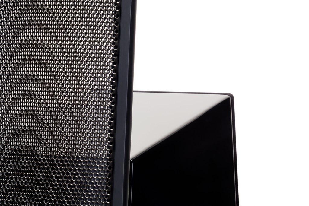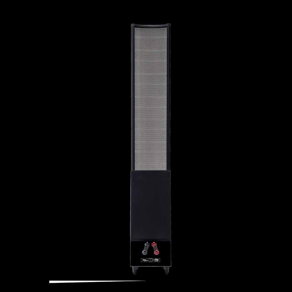 Особенность XStat CLS в данной АС заключается в применении очень тонкой и легкой пленочной мембраны, расположенной между стальными статорами уменьшенной толщины MicroPerf с полимерным покрытием и мелкой перфорацией. Электростат озвучивает ВЧ/СЧ-диапазон, имеет характерную форму, напоминающую сегмент цилиндрической фигуры, и позволяет получить исключительно точный аккуратный звук. Такая геометрия улучшает дисперсные характеристики, повышает детальность и обеспечивает широкую сцену. Используется очень жесткая рама AirFrame из авиационного алюминия и композита, которая понижает интермодуляционные искажения. Спикер MartinLogan ElectroMotion ESL X ведет себя как настоящая дипольная колонка, так как звуковые волны излучаются мембраной вперед и назад. При этом удается свести к минимуму отражения от боковых стен помещения, негативно влияющие на микродинамику и стереообраз. Для обеспечения работы XStat CLS к спикеру подключается низковольтный источник питания.