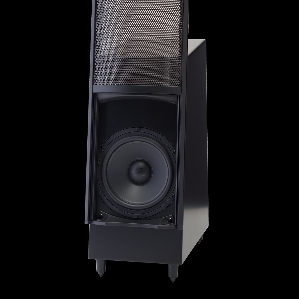 EM-ESL X оснащен двойными 8-дюймовыми сабвуферами из легированного волокна с аудиофильным покрытием, изготовленными по заказу собственной команды MartinLogan по проектированию. Эта эффективная конструкция низкочастотного динамика оптимизирует конусную подвеску и поле магнитного потока для получения большого басового выхода с исчезающе низким уровнем искажений. Жесткая и легкая, изготовленная на заказ диафрагма сабвуфера устраняет изгиб конуса и минимизирует время отклика, достигая уровней производительности, приближающихся к более крупным и дорогим моделям электростатических громкоговорителей MartinLogan.