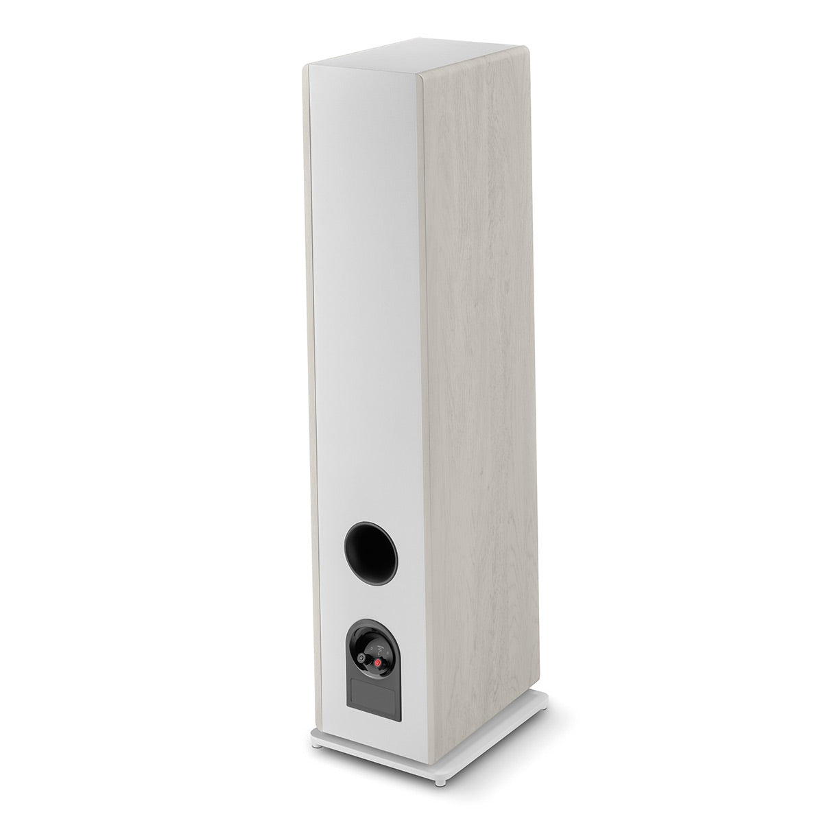 Гармония и изысканность отделки акустической системы, фасады которой обиты искусственной кожей черного или белого цвета, а боковые панели предлагаются в вариантах Black High Gloss, Dark Wood или Light Wood, позволяют без труда встроить ее в любой интерьер. Непараллельные боковые панели, изготовленные из MDF толщной 25 мм, создают корпус с очень низкой вибрацией и нейтральностью. Наклонный подиум изготовлен из литого алюминия.
