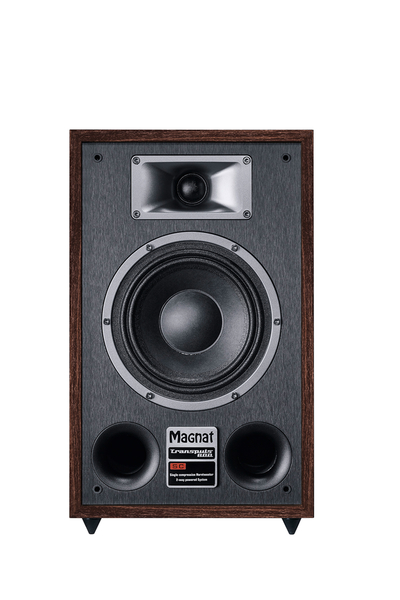 Magnat Transpuls 800A имеет рупорный твитер. ВЧ-динамик с одинарным компрессионным рупором приводится в действие тканевым куполом диаметром 25 мм. Есть неодимовый магнит. Геометрия рупора была идеально рассчитана, чтобы твитер звучал не только чрезвычайно динамично, но и очень естественно. СЧ/НЧ-динамик имеет диаметр 170 мм. Мощный драйвер за диффузором из закаленной бумаги с тканевым креплением PA. Также была использована лазерная измерительная технология Klippel для обнаружения и устранения искажений. Далее – при непрерывной выходной мощности 2 x 60 Вт и пиковой мощности 2 x 120 Вт усилители действительно нагревают динамики. Оба усилителя спрятаны в правом активном динамике, а левый просто подключается с помощью кабеля динамика. Это упрощает монтаж проводки.
