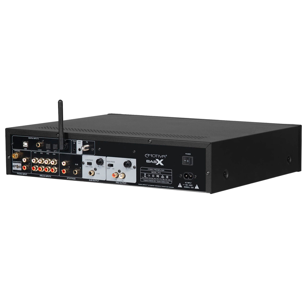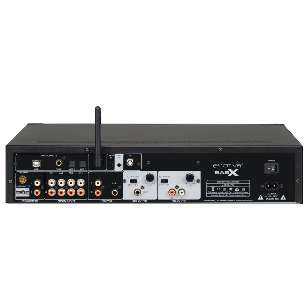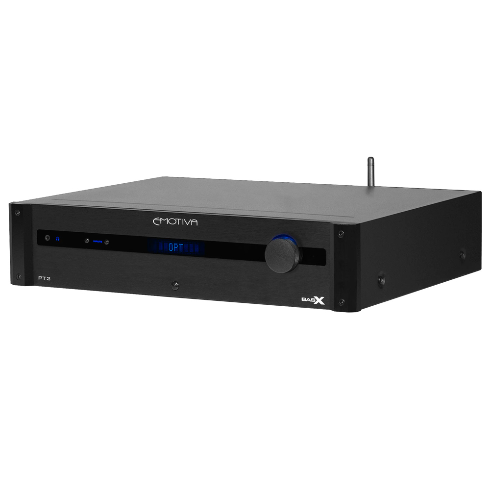 Emotiva PT-2 позволяет вам испытать гибкость и превосходное качество звука, которых вы можете достичь с помощью отдельных аудиофильских компонентов по удивительно доступной цене. PT2 — это стереофонический предусилитель, который включает в себя высококачественный стереофонический FM-тюнер, большое количество входов для аналоговых источников линейного уровня, встроенный ЦАП с большим количеством цифровых входов для всех ваших цифровых аудиоисточников, включая асинхронный USB-вход с высоким разрешением и встроенный Bluetooth-приемник с поддержкой AptX HD, а также высокопроизводительный фонокорректор, поддерживающий картриджи с подвижным магнитом и подвижной катушкой. PT2 можно управлять с помощью простых органов управления на передней панели или с помощью прилагаемого инфракрасного пульта дистанционного управления. Интуитивно понятное меню упрощает настройку и эксплуатацию PT2, а большой ярко-синий VFD-дисплей на передней панели легко читается и всегда точно показывает, что происходит. Сочетайте PT2 с усилителем мощности и парой динамиков, чтобы получить стереосистему с великолепным звучанием, или используйте комплексную активную систему управления басами, чтобы добавить активный сабвуфер и создать полноценную 2.1-канальную систему аудиофильского качества.