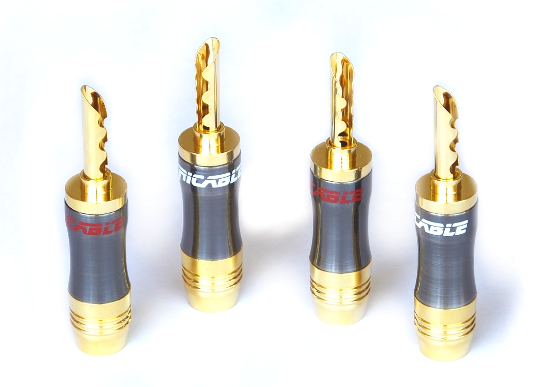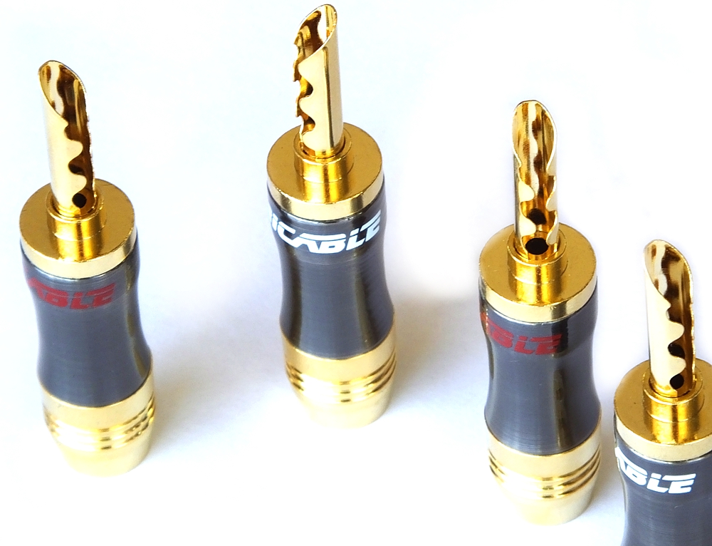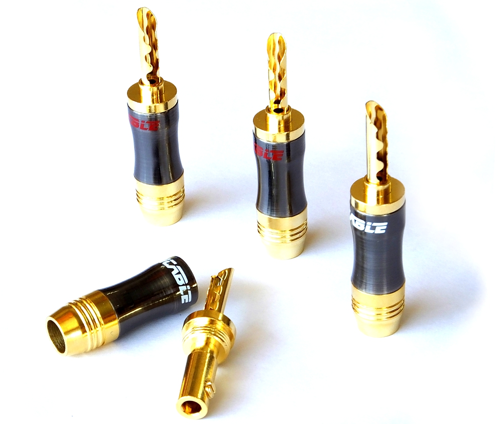 Профессиональные разъемы типа «банан» из серии Hi-End Speaker. Изготовлены с полностью 24-каратным золотым покрытием корпуса, специально разработаны и созданы для подключения высококачественных акустических систем. Комплект состоит из 2 разъемов с красной маркировкой (положительный сигнал) и 2 разъемов с черной маркировкой (отрицательный сигнал). Конструкция Custom BNH значительно улучшает передачу аудиосигнала.