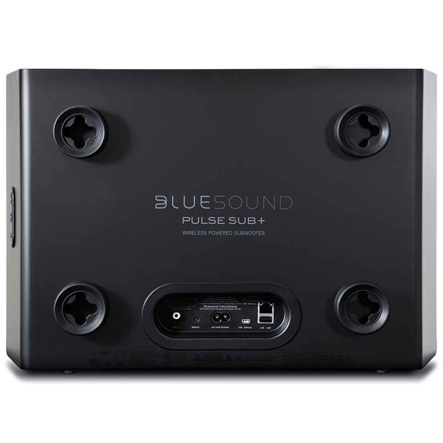 Беспроводной активный сабвуфер Bluesound Pulse Sub+ пришел на смену Bluesound Pulse Sub. Как и предшественник, Pulse Sub+ призван дополнить Bluesound Pulse Soundbar 2i. Также его можно сочетать с медиаплеером Powernode 2i. Bluesound Pulse Sub+ толщиной 146 мм особенно полезен там, где нужно разместить сабвуфер незаметно. Устройство для настенного монтажа входит в комплект поставки, а для напольного положения предусмотрены резиновые ножки. Габариты вполне позволяют разместить саб под каким-нибудь предметом мебели.