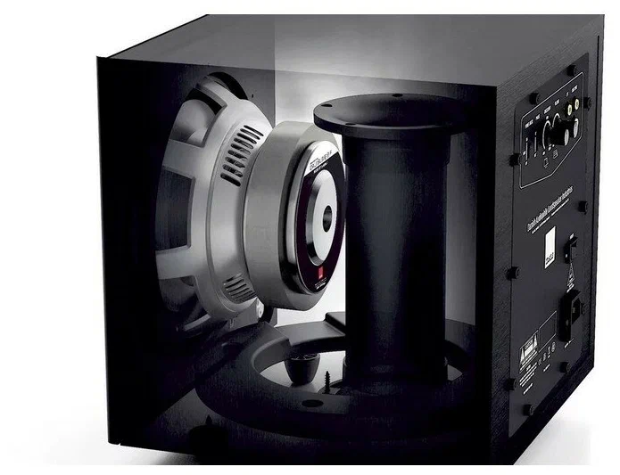 Большой запас прочности и мощности такого «мотора» гарантирует, что басовый динамик всегда точно отслеживает сигнал, поступающий с усилителя!