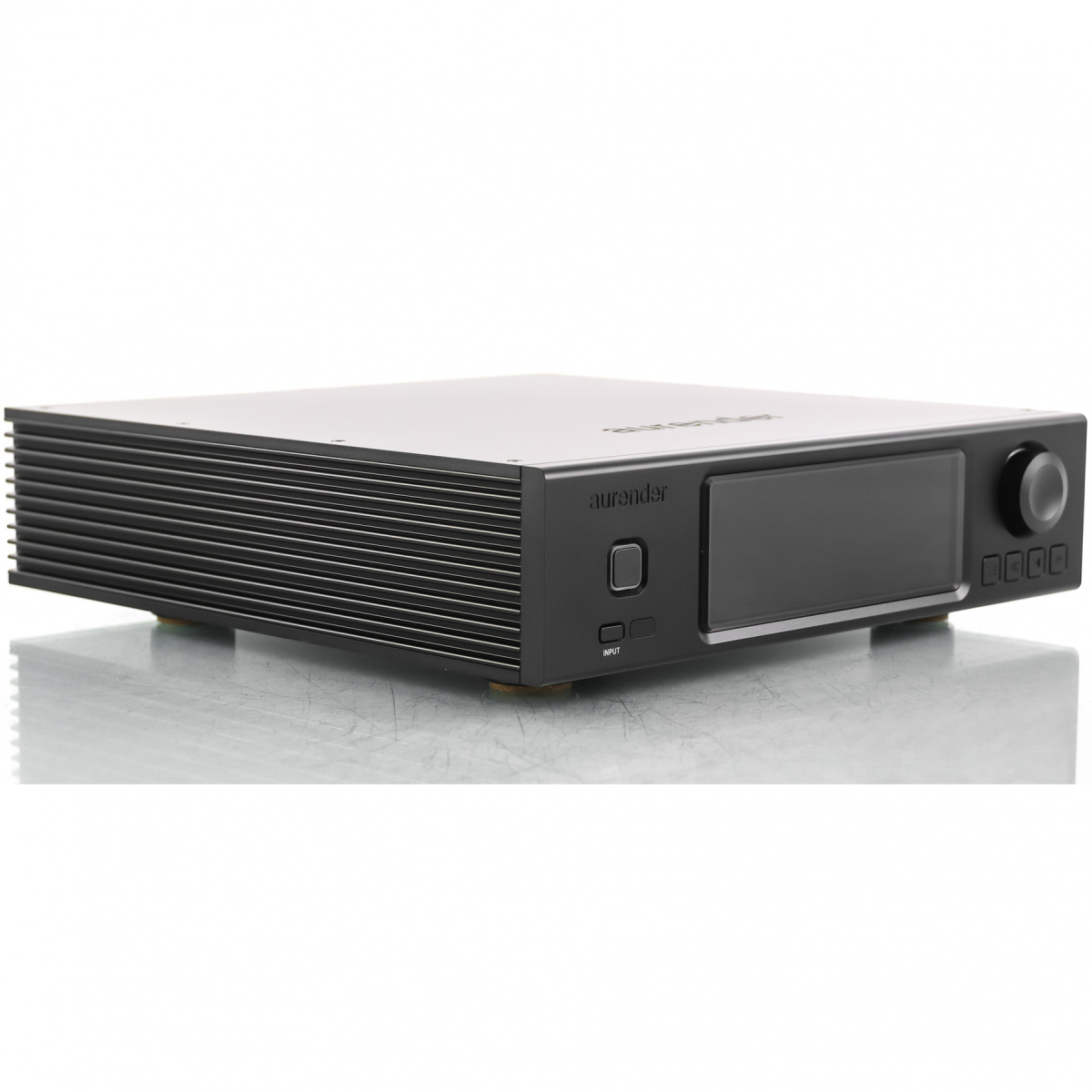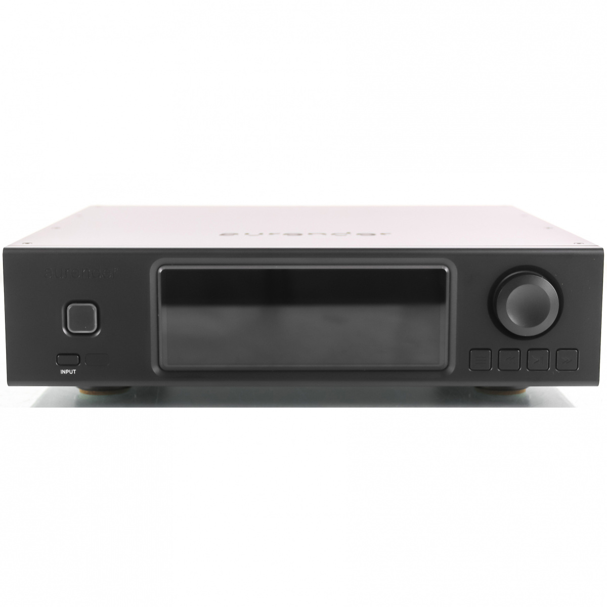 A200 способен работать в роли предусилителя: его с легкостью можно подключить напрямую к усилителю мощности или активной аудиосистеме. Громкость регулируется из приложения AurenderConductor, доступного в версиях для iPad, iPhone и устройств на ОС Android. На входящем в комплект пульте ДУ, выточенном из цельного куска алюминия, есть клавиши для регулировки громкости, отключения звука, выбора входа и выхода, запуска либо остановки воспроизведения и других важных функций, ради которых не придется использовать смартфон или планшет. Управлять громкостью и воспроизведением, а также выбирать плейлисты можно и с фронтальной панели самого устройства. Если же в вашей системе уже есть качественный предусилитель, регулируемый выход можно сделать фиксированным и передать функцию регулировки громкости внешнему устройству.