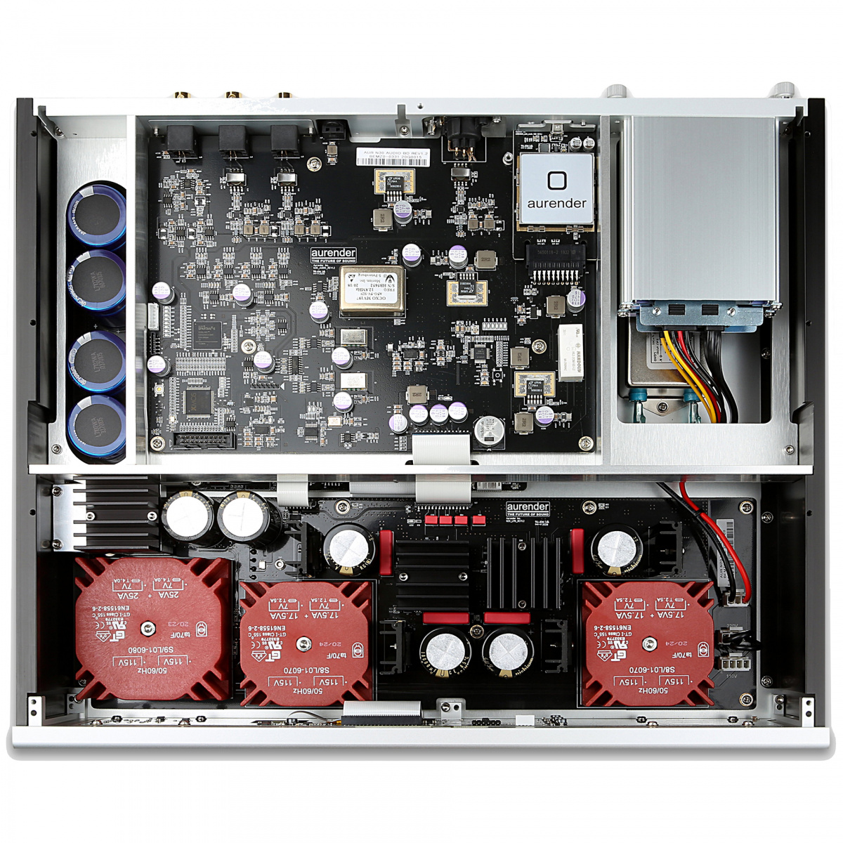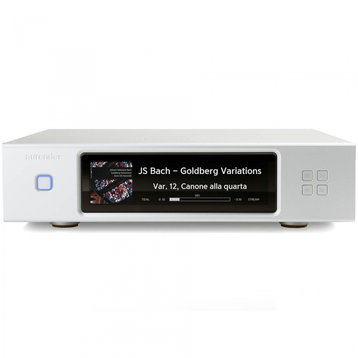 Цифровой аудиоплеер Aurender N20 4Tb, сочетающий в себе функции аудиофильского стримера и сервера, оборудован двумя слотами для 2.5-дюймовых дисков HDD и SSD. Суммарный объем такого хранилища может достигать 16 ТБ (при установке двух накопителей по 8 ТБ). В данной версии на борту имеется SSD объемом в 4 ТБ. Для стабильного воспроизведения DSD512 и другого высокобитрейтного контента в плеере Aurender N20 установлена оперативная память объемом 8 Гб, а размер SSD-кэша увеличен до 500 Гб. Быстродействие кэширующего диска было существенно повышено благодаря выбору накопителя формата M2 NVME вместо обычного SATA. В модели реализованы многие конструктивные доработки, повышающие производительность, улучшены схемотехника и элементная база – все ради того, чтобы повысить качество воспроизведение цифровых аудиофайлов.