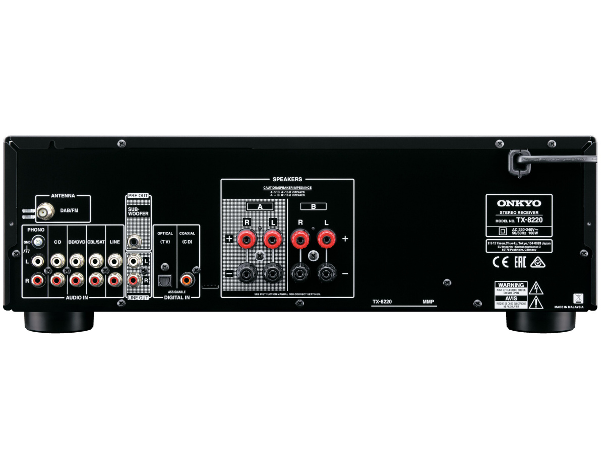 Предназначенный для любителей музыки и кино, которые хотят добавить отличный звук для разнообразных медиа-источников, Onkyo TX-8220 оснащен обширным разнообразием аудио соединений. Этот ресивер - один из немногих в своей ценовой категории, оснащенных качественным фонокорректором для проигрывателей виниловых пластинок с головками типа ММ. У него есть также цифровые входы для подачи сигналов с телевизора на усилитель и затем на колонки. На случай, если вы предпочитаете ЦАП в устройстве–источнике или хотите подключить телефон или аудио плеер, у Onkyo TX-8220 имеются четыре аналоговых линейных входа.
