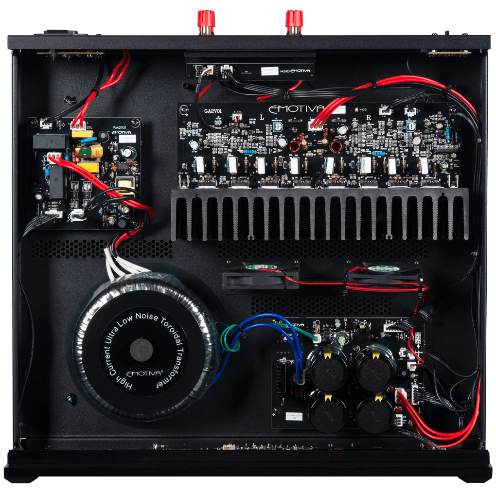 Emotiva BasX A2 работает в классическом для Hi-Fi-техники классе A/B, что обеспечивает комфортное звучание при прослушивании музыки различных жанров. Динамичный характер и насыщенные басы усилителя отлично подходят и для электронной музыки, и взрывных дорожек современных блокбастеров. Блок питания Emotiva BasX A2 построен на базе трансформатора высокой мощности и конденсаторов фильтра значительной емкости. Применение линейного блока питания обеспечило отсутствие высокочастотных помех, которые могут создавать импульсные источники. Высокий коэффициент демпфирования позволяет Emotiva BasX A2 справляться с колонками даже со сложной характеристикой импеданса.