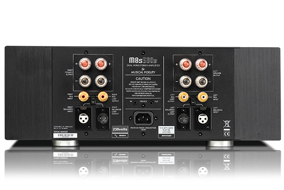 Musical Fidelity M8-500s является полностью балансным стереофоническим усилителем выполненным по принципу «двойное моно» обеспечивающим максимальную выходную мощность 500 Ватт на канал при импедансе нагрузки в 8 Ом. О высоком качестве новинки говорит в первую очередь широкий диапазон воспроизводимых частот - 10 Гц-80 кГц, при неравномерности АЧХ не более ±1 дБ.