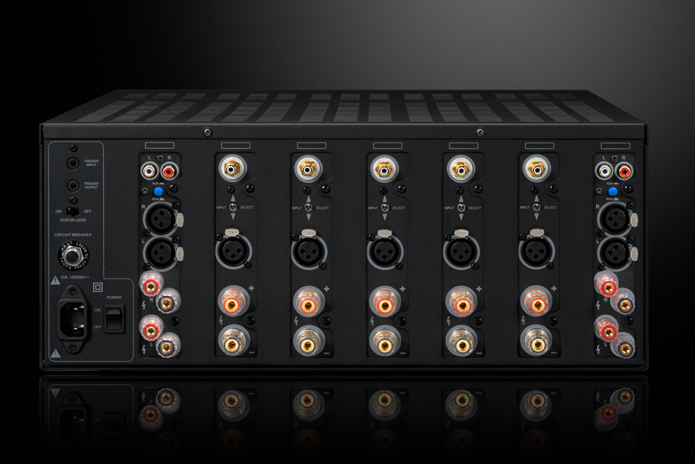 Полностью модульный усилитель мощности звука снабжён высокоэффективным блоком питания с режимом переключения (SMPS), автономными, полностью дискретными, сдвоенными дифференциальными, сильноточными с коротким сигнальным трактом модулями усилителя класса A/B, с оптимизированной топологией источника питания класса H™ и микропроцессорной защитой от сбоев.