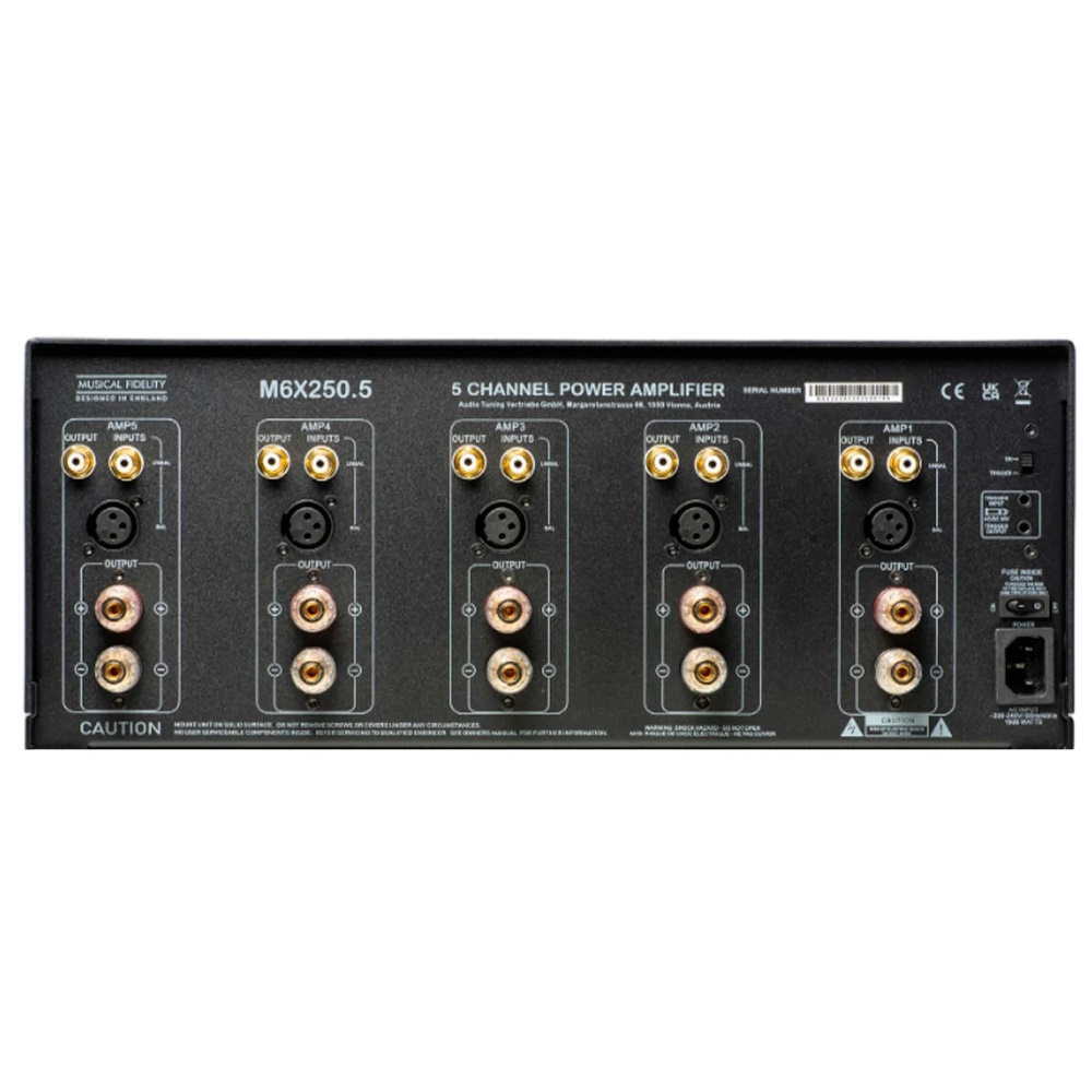 Musical Fidelity M6X 250.5 — это пятиканальный усилитель мощности, имеющий модульную конструкцию. Каждый модуль усилителя выдаёт 250 Вт на нагрузке 4 Ом и работает в классе АВ.