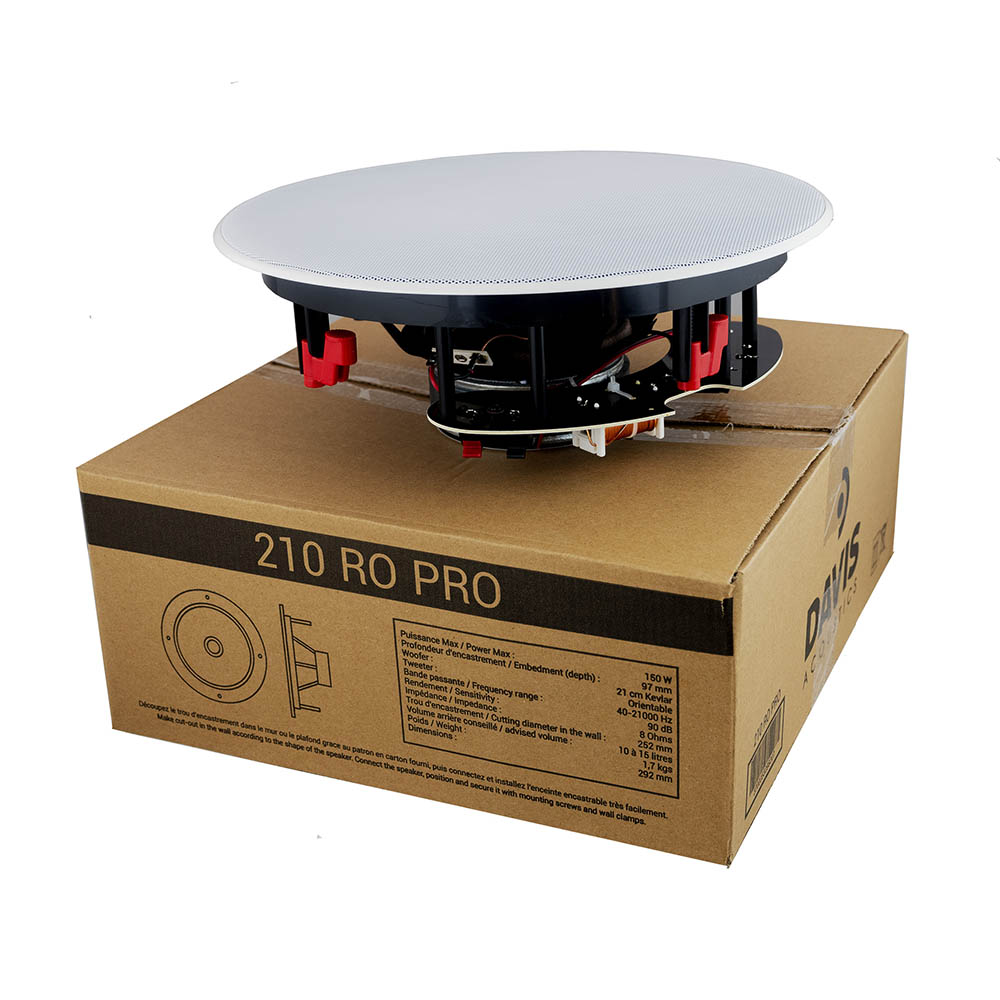Встроенные динамики, такие как 210 RO PRO, не претендуют на замену динамиков-книжных шкафов, громкость нагрузки и фильтр которых были оптимизированы, тем не менее, особое внимание было уделено их качеству звука: динамик из плетеного кевларового волокна, твитер с текстильным куполом.